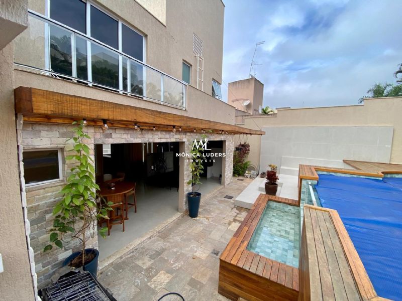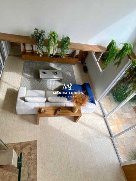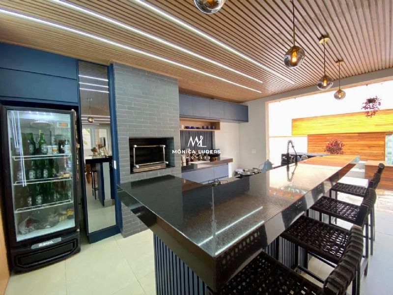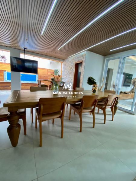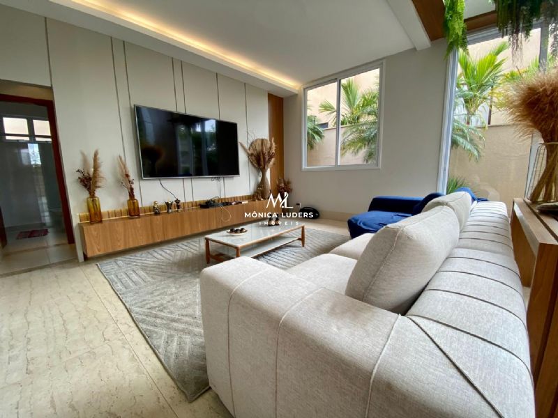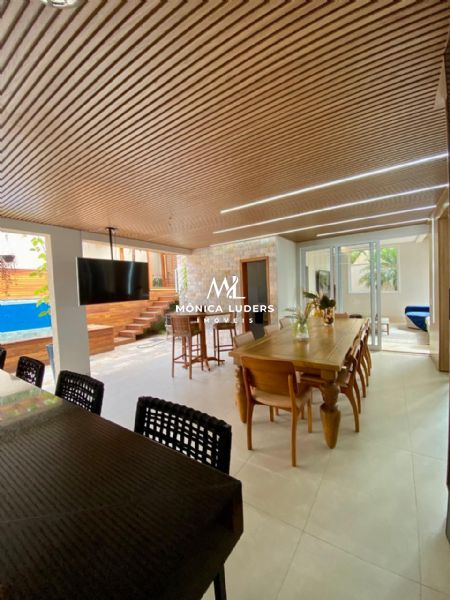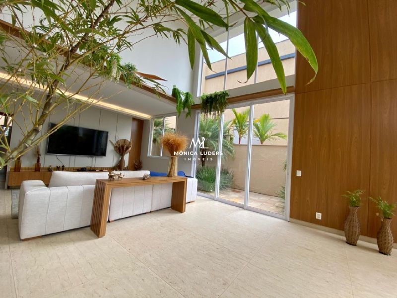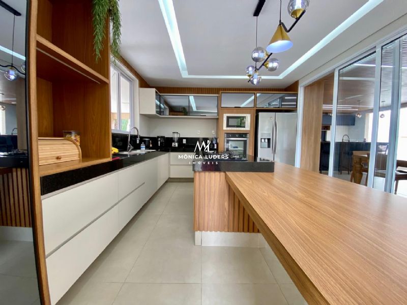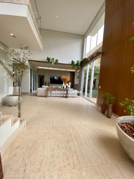 Ampla sala de estar com pé direito duplo, jantar e sala de TV com sistema de áudio embutido, cozinha ampla e excelente integração com espaço gourmet.