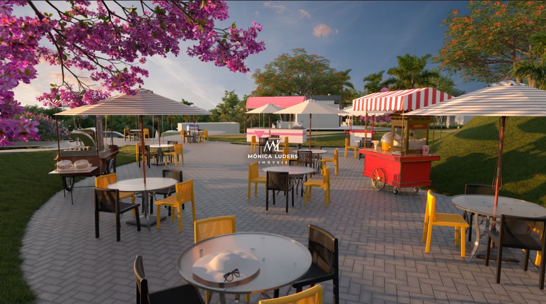 Alamedas com parreirais de uvas, projetadas para promover caminhadas livres e seguras por todo o condomínio.